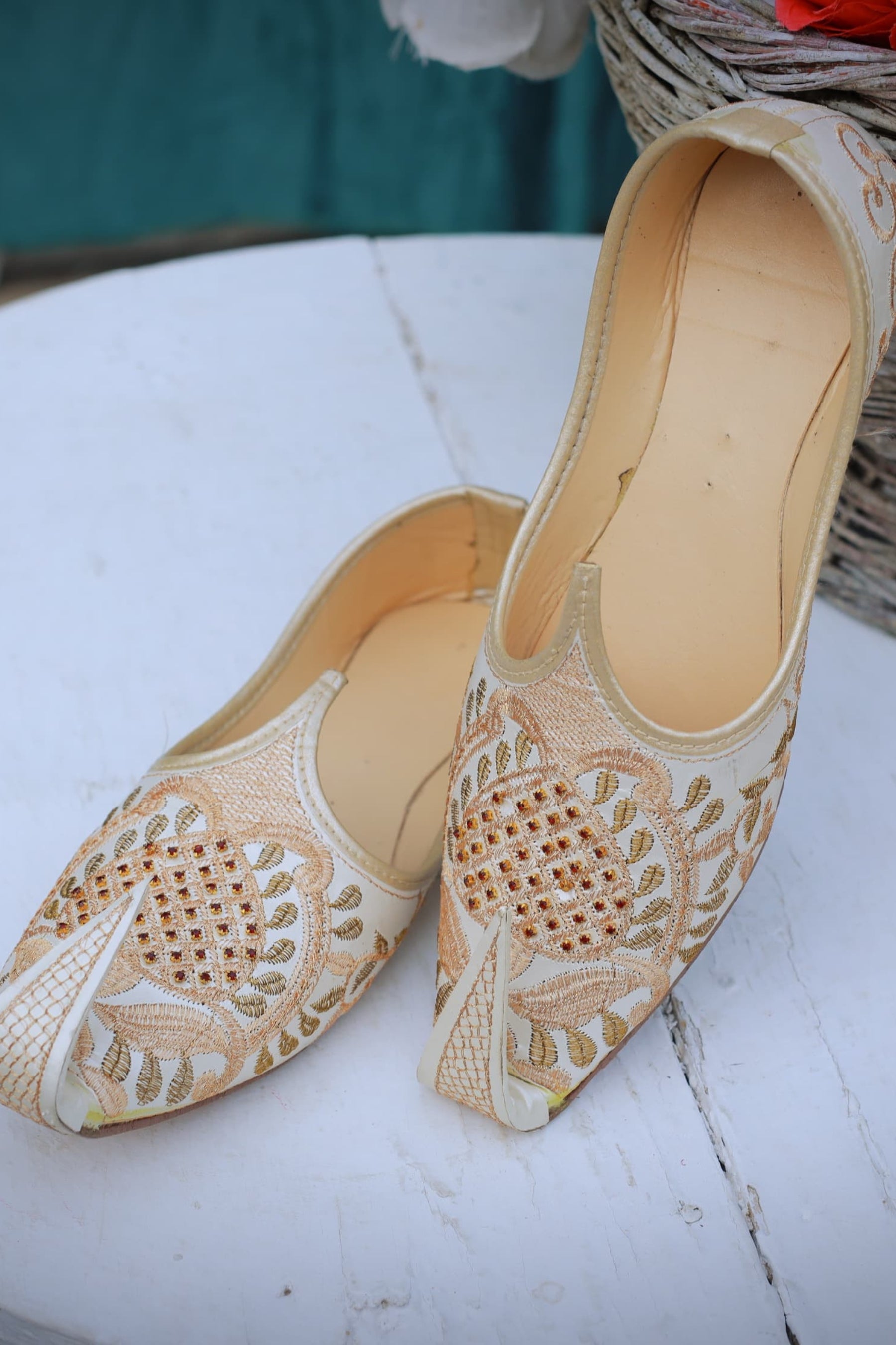 A graceful ivory khussa designed for comfort and traditional celebrations.