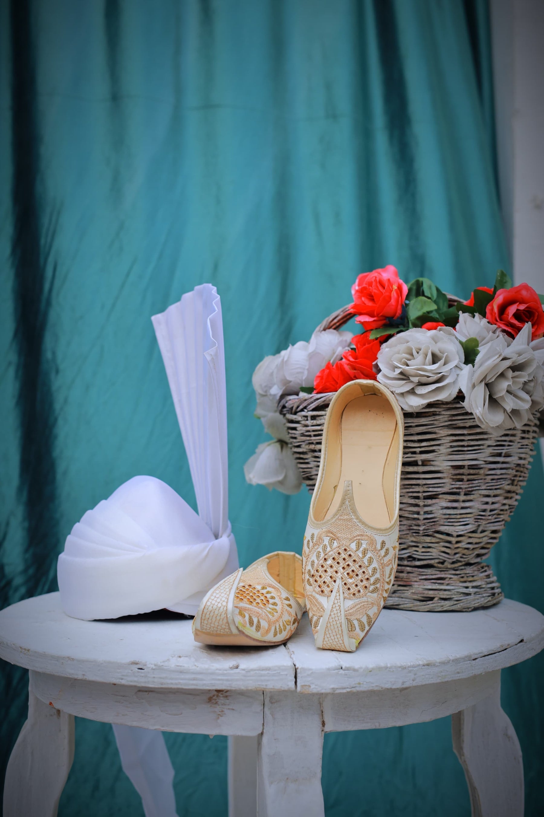 This ivory khussa is carefully handcrafted with golden zari embroidery, inspired by classic floral motifs. The rich textile upper is paired with a soft inner lining for all-day comfort. Its curved toe and fine detailing reflect cultural finesse, making it ideal for weddings, festive occasions, or ceremonial wear. A quiet blend of heritage, ease, and elegance — this pair is perfect for those who appreciate thoughtful craftsmanship.